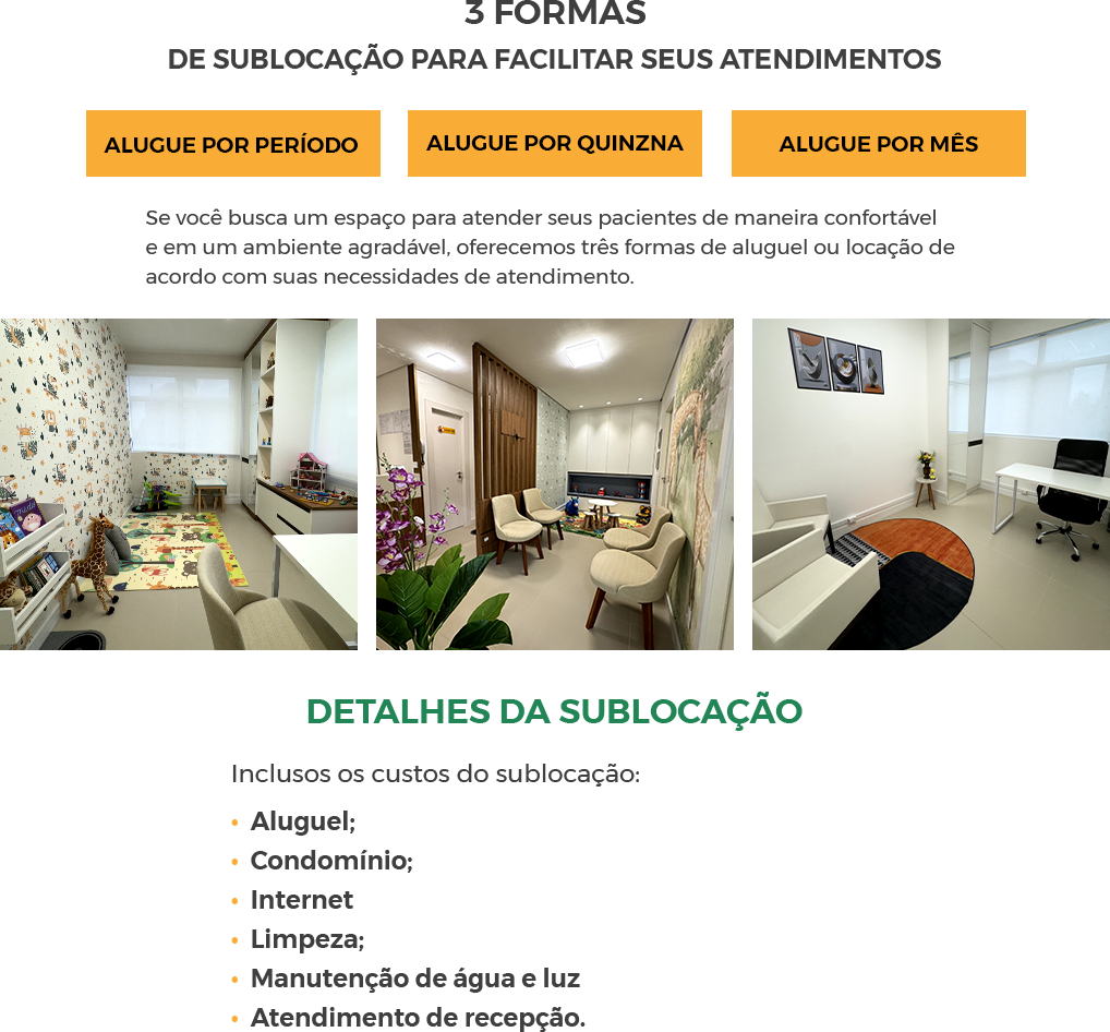 ✓ Salas disponível com excelente estrutura para atendimento infantil e adulto.